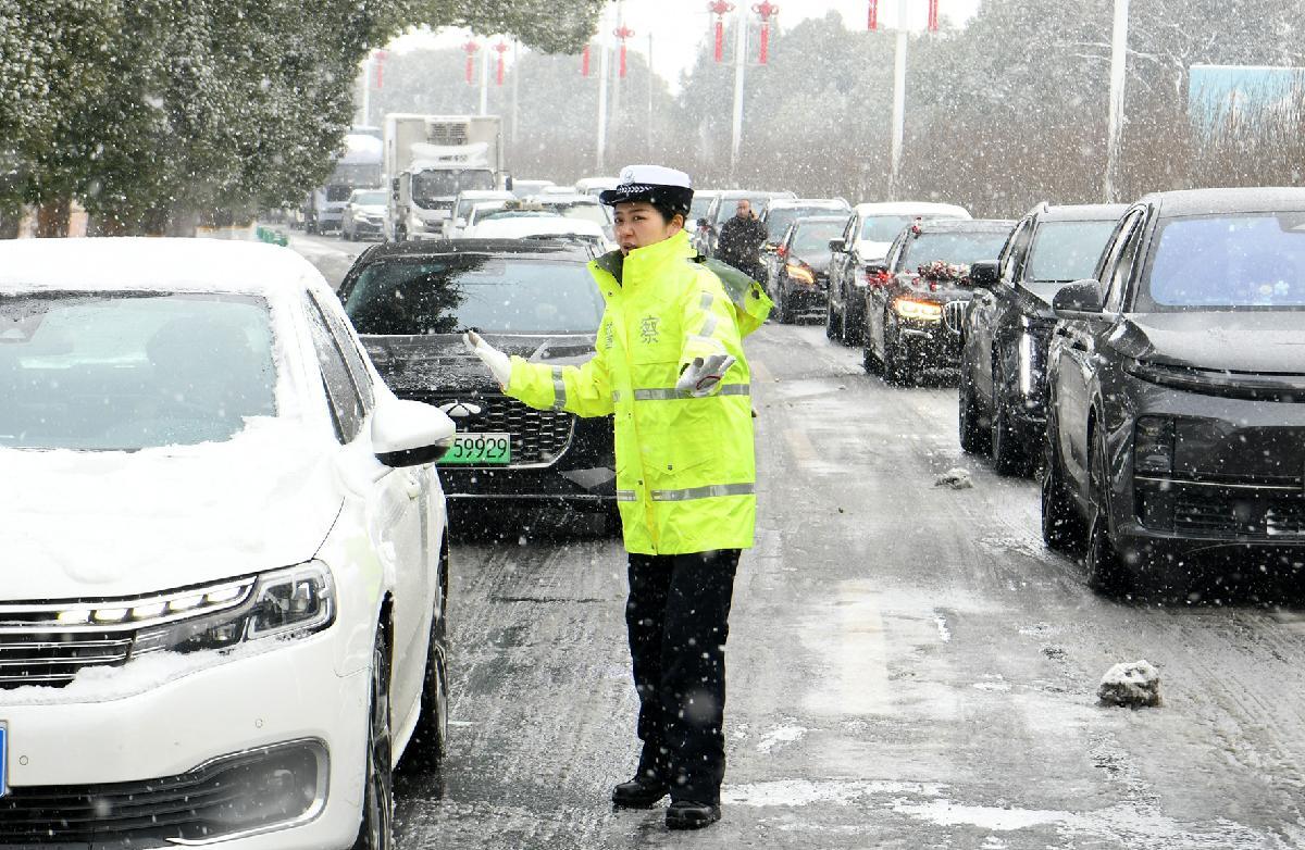 1月20日,安徽省舒城縣迎來入冬最強降雪。舒城縣公安局交管大隊顯性用警,在轄區(qū)重點路段、路口、橋梁等處指揮疏導交通,主動為民紓困,全力保障路面安全暢通。