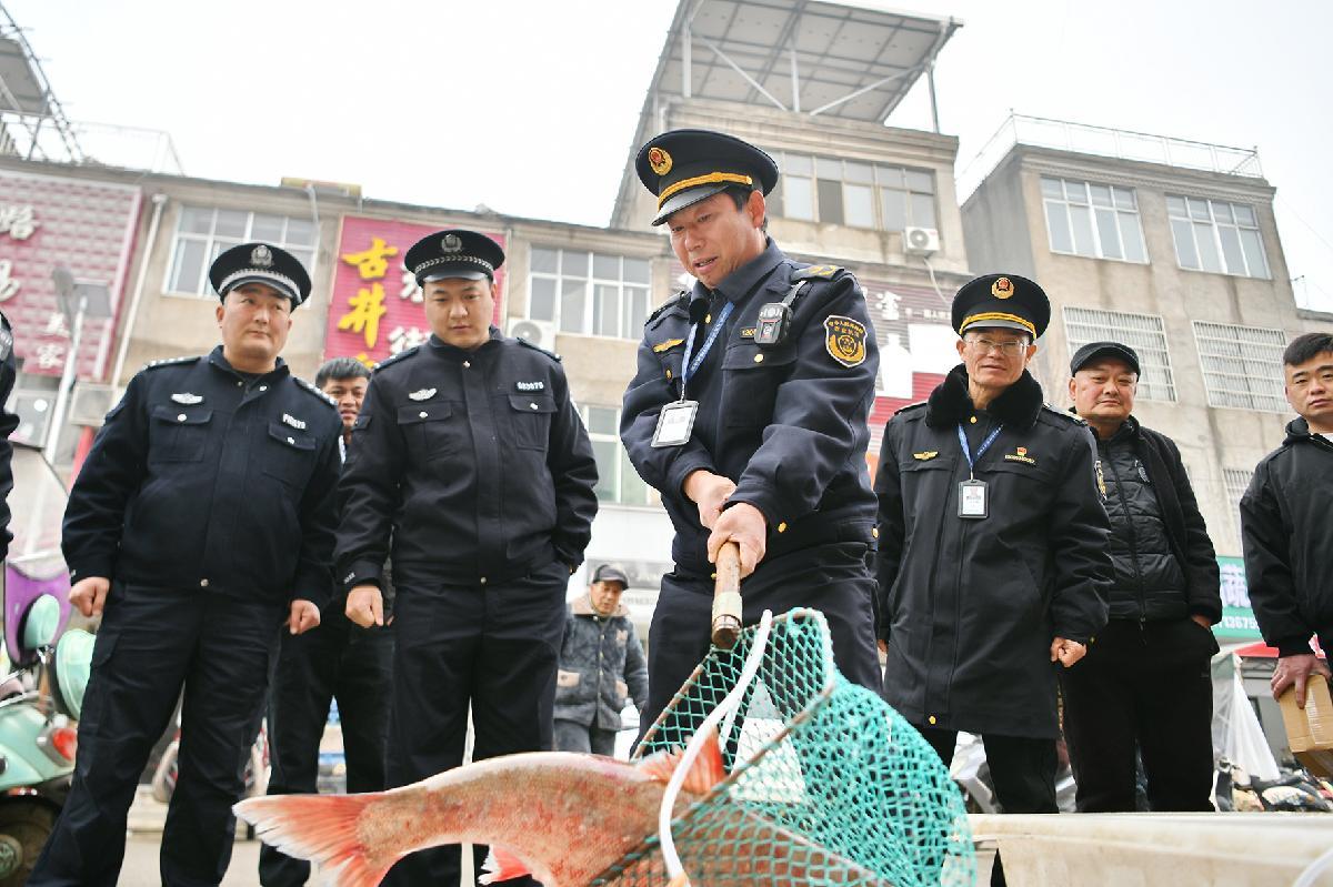 春節(jié)臨近,安徽省阜南縣農(nóng)業(yè)農(nóng)村局聯(lián)合公安局、市場監(jiān)督管理局等部門對轄區(qū)農(nóng)貿(mào)市場、超市和餐飲企業(yè),開展原料采購溯源、生產(chǎn)加工流程和淮河禁捕魚類監(jiān)督檢查,守護群眾節(jié)日“舌尖上的安全”。