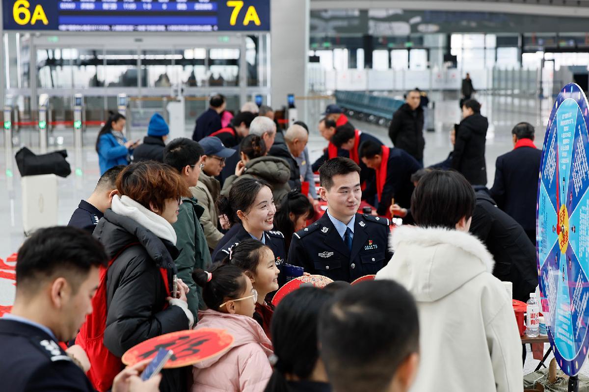 2月2日,合肥鐵路公安處在合肥西站候車室開展寫春聯(lián)送福字、安全知識(shí)有獎(jiǎng)問(wèn)答等活動(dòng)。
