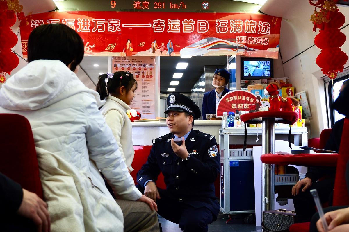 2月2日,襄陽(yáng)鐵路公安處乘警支隊(duì)攜手襄陽(yáng)客運(yùn)段,在G6807次列車上開展春運(yùn)首日安全宣傳。