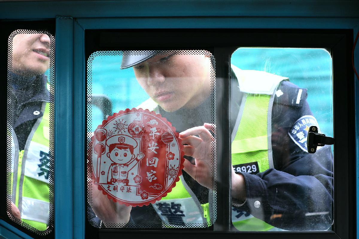2月2日,安徽省寧國(guó)市公安局交管大隊(duì)執(zhí)勤民警向過(guò)往車輛發(fā)放“平安回家”窗花和“溫馨提示”單,將溫馨的新春祝福與安全提醒相結(jié)合,把一路平安的誠(chéng)摯祝愿送給每位駕駛?cè)藛T。