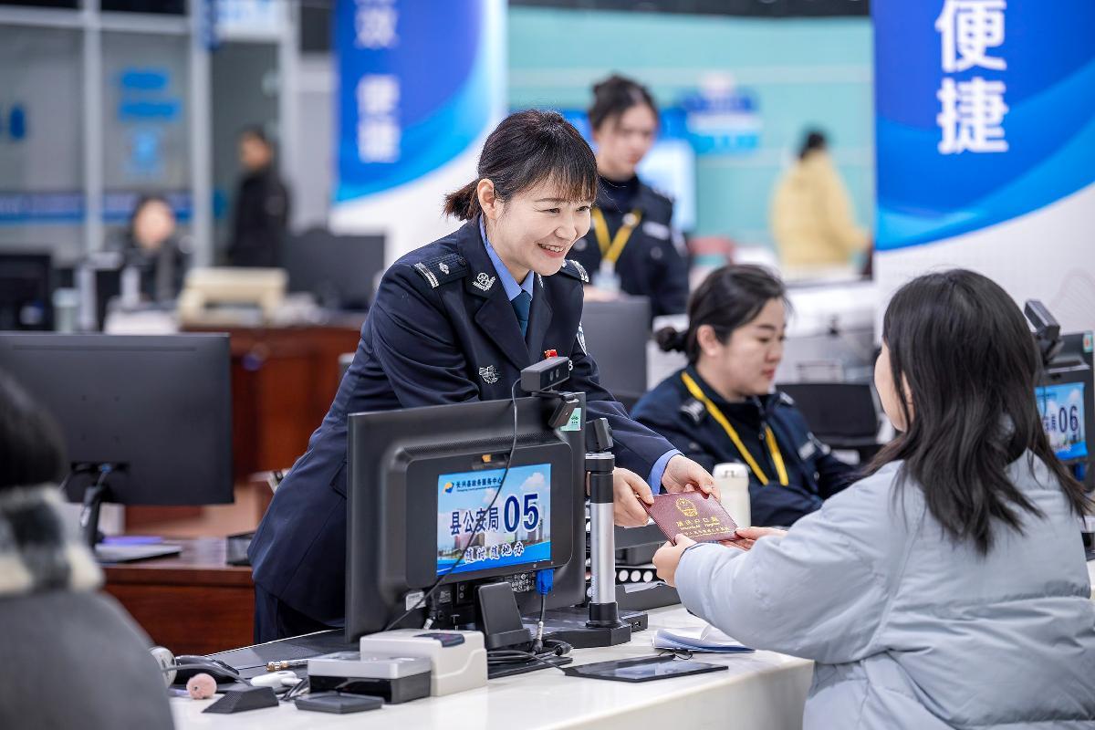 圖為1月4日,辦證窗口民警在午間為預(yù)約群眾辦理業(yè)務(wù)。