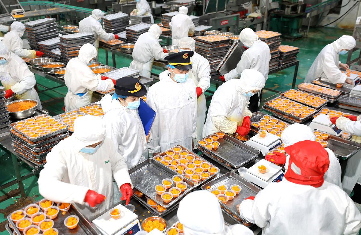 圖為2月10日,市場監(jiān)督管理局工作人員對轄區(qū)食品生產(chǎn)企業(yè)進行現(xiàn)場指導把關。