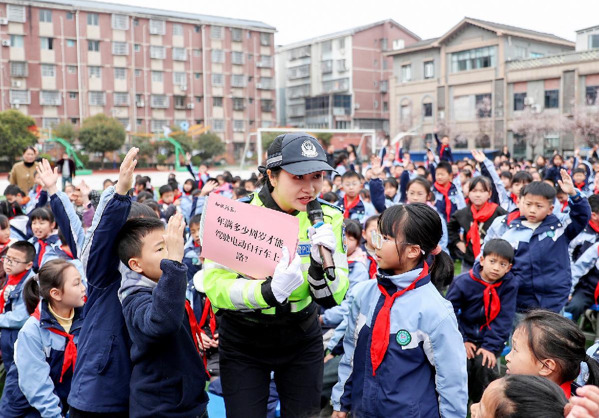3月2日,四川省廣安市公安局交通管理支隊(duì)、華鎣市公安局交通管理大隊(duì)聯(lián)合組織交通安全知識(shí)宣傳志愿服務(wù)隊(duì),走進(jìn)華鎣市紅巖小學(xué)開展春季開學(xué)安全第一課普法宣傳。