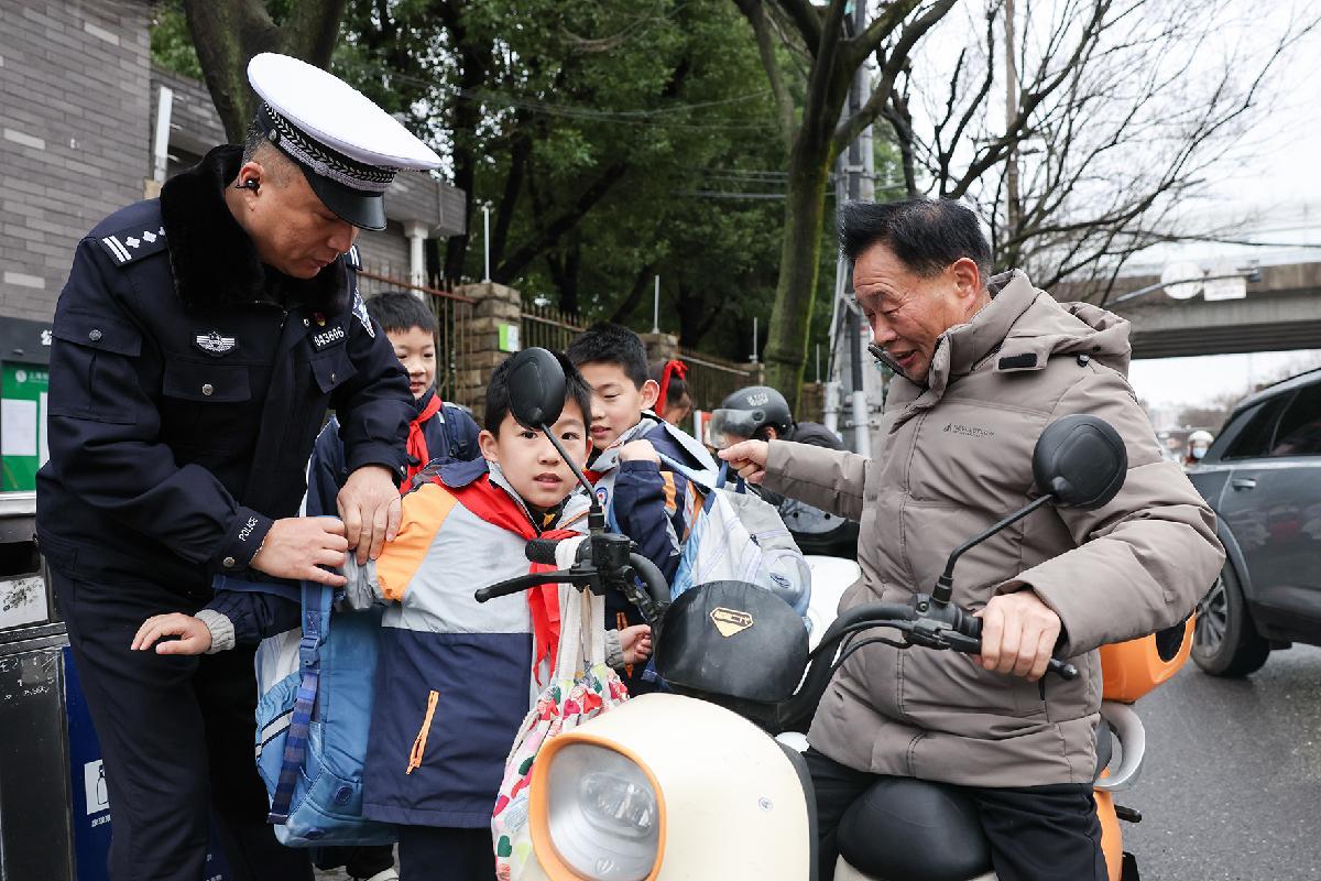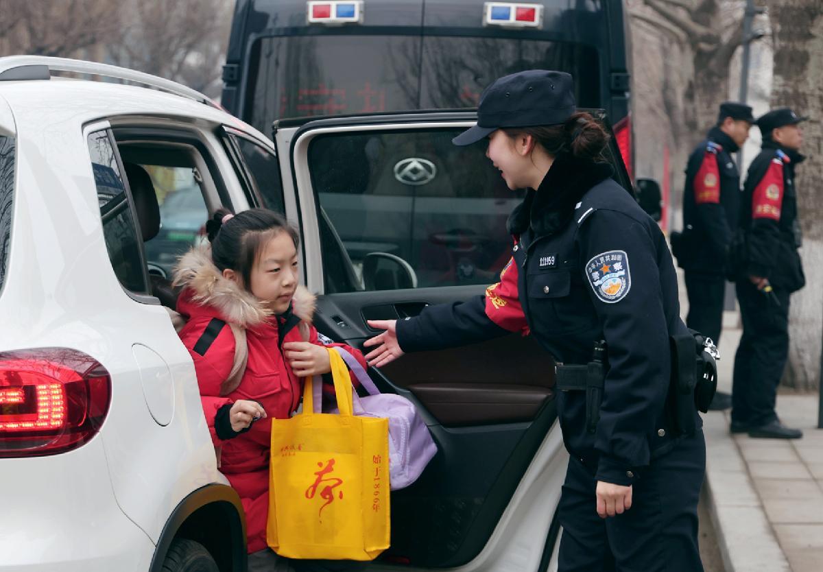 3月2日,遼寧省沈陽(yáng)市中小學(xué)生迎來(lái)新學(xué)期開學(xué)第一天。沈陽(yáng)市公安局皇姑分局民輔警在轄區(qū)中小學(xué)校護(hù)學(xué)崗執(zhí)勤,守護(hù)學(xué)生平安入校。