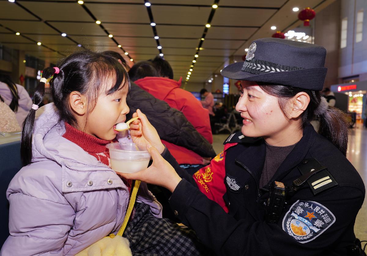 3月2日,湖北宜昌東站迎來了春運返程客流高峰。襄陽鐵路公安處宜昌東站派出所組織民警做好服務保障工作的同時,將一碗碗熱氣騰騰的湯圓送到旅客手中,共同迎接元宵佳節(jié)的到來。