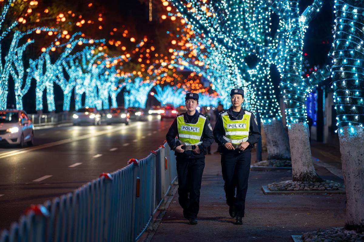 3月6日,浙江省臺(tái)州市公安局黃巖分局城東派出所女民警在東官河路執(zhí)勤巡邏,在崗位上迎接三八節(jié)的到來。