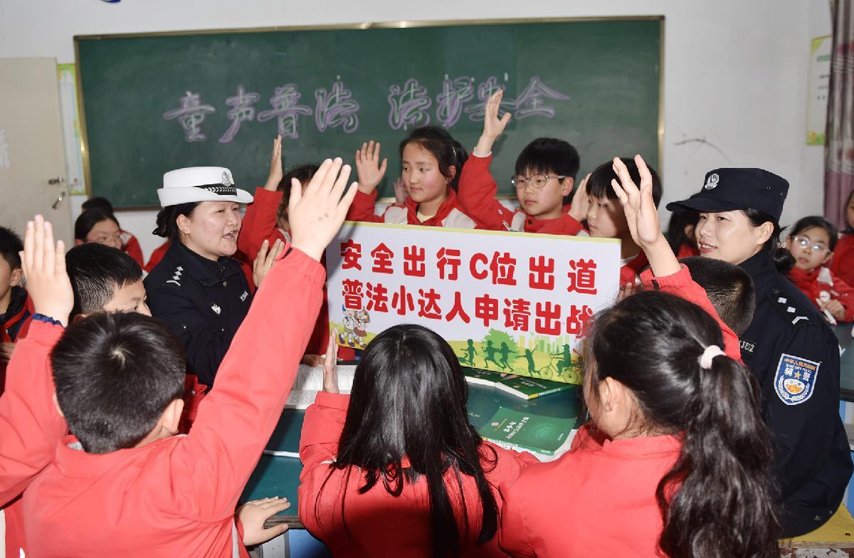 3月23日,安徽省宿松縣公安局交通管理大隊(duì)走進(jìn)松滋小學(xué),通過(guò)情景模擬,輔導(dǎo)“童聲普法社團(tuán)”的小小普法員開(kāi)展交通安全普法宣傳。