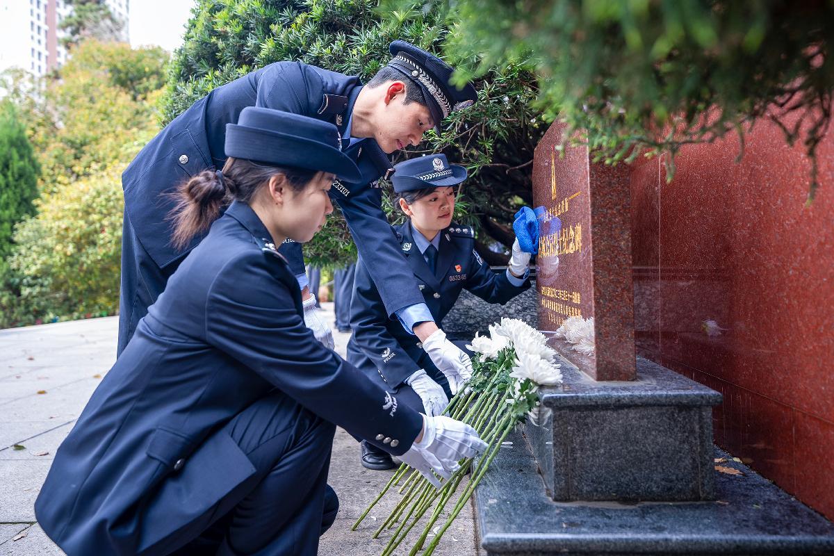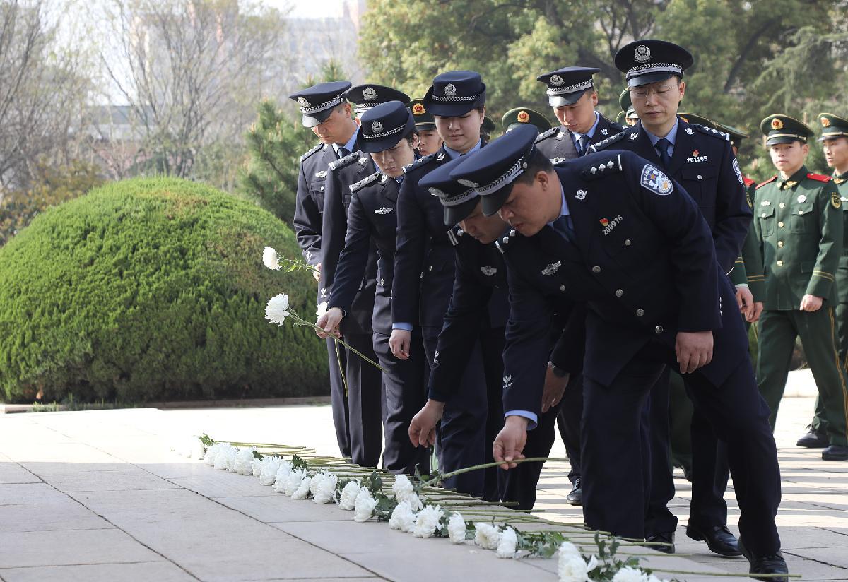 4月1日,遼寧省本溪市公安局組織民警輔警在本溪市烈士陵園公安英烈廣場(chǎng),舉行以“承英烈遺志 做忠誠(chéng)衛(wèi)士”為主題的清明節(jié)緬懷英烈祭奠活動(dòng)。
