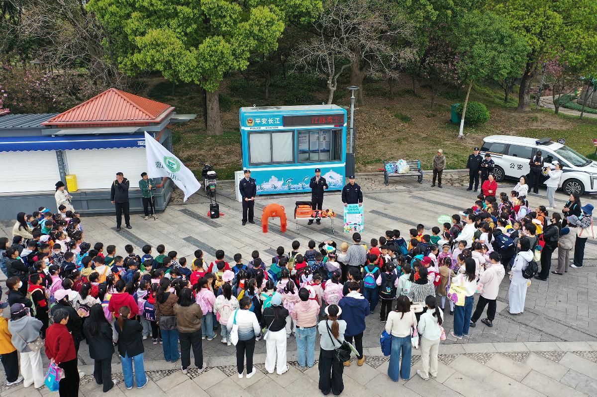 4月10日,長江航運公安局南通分局南通派出所民警走進南通市濱江小學春游活動現場,為小朋友們送上防溺水安全大禮包。