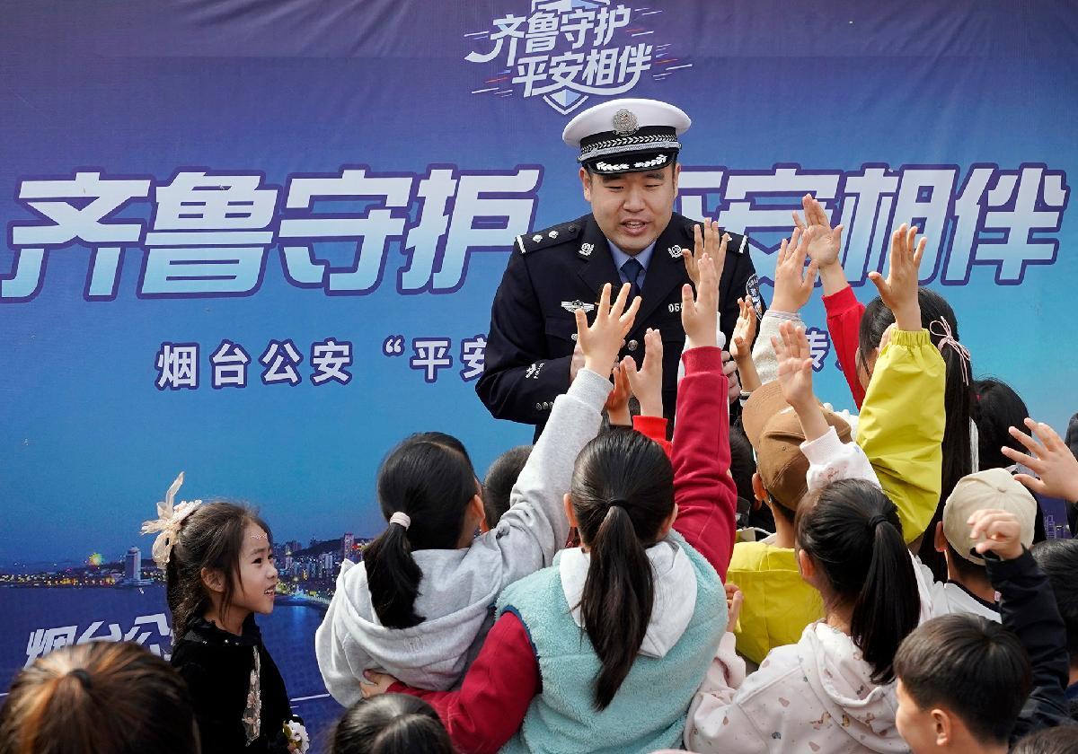 4月11日,山東省煙臺(tái)市公安局在牟平區(qū)龍湖櫻花大道舉辦“齊魯守護(hù)·平安相伴”春日游園會(huì),現(xiàn)場(chǎng)小朋友積極參與交通安全游戲。