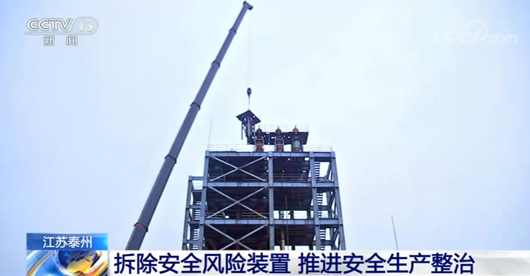 央視網(wǎng)消息:從去年11月底開始,江蘇開展了為期一年的安全生產專項整治行動。昨天(23日),在江蘇泰州,當?shù)貙衲暾斡媱澲械奈;奉I域重大安全風險裝置進行拆除。
