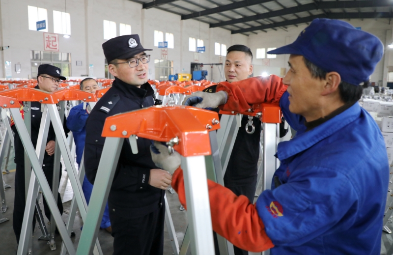近日,江西省九江市公安局濂溪分局虞家河派出所民警輔警聯(lián)合市場(chǎng)監(jiān)管部門人員深入轄區(qū)企業(yè)進(jìn)行走訪和開展安全生產(chǎn)隱患排查,了解企業(yè)需求,并征求員工意見建議。圖為民警輔警和市場(chǎng)監(jiān)管部門人員走訪企業(yè)并開展安全生產(chǎn)隱患排查。 本報(bào)通訊員 游建棟 攝