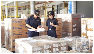 2024年5月31日,黃埔全球供應(yīng)鏈中心開始運(yùn)行。一年來,該中心通過“物流鏈再造+數(shù)字化監(jiān)管”雙輪驅(qū)動,已形成“口岸直通+屬地監(jiān)管”模式,為粵港澳大灣區(qū)穩(wěn)鏈強(qiáng)鏈提供支持。圖為關(guān)員監(jiān)管黃埔全球供應(yīng)鏈中心貨物。 本報(bào)通訊員 傅可 攝