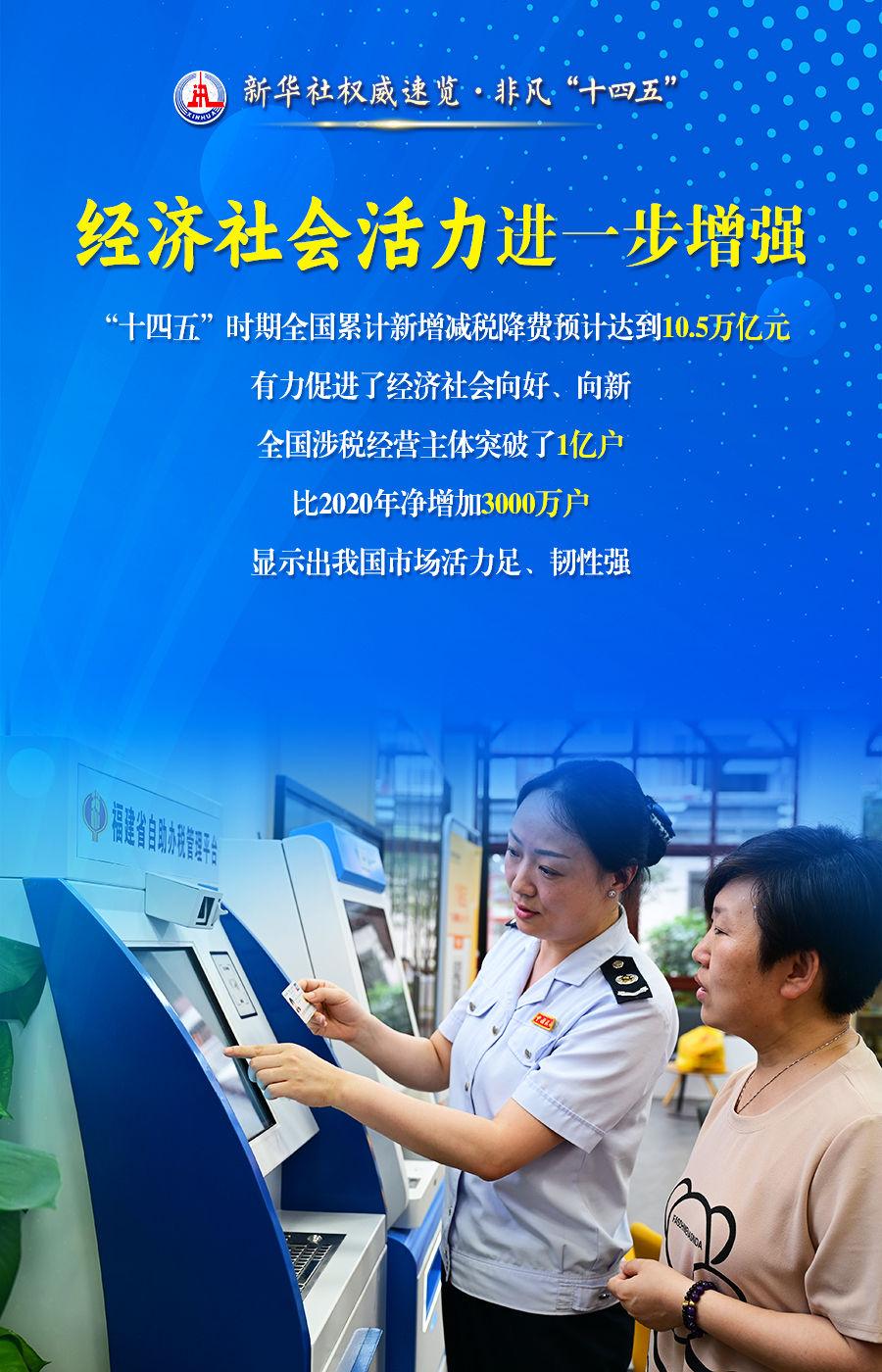 財力基礎(chǔ)進一步壯大、經(jīng)濟社會活力進一步增強、市場營商環(huán)境進一步優(yōu)化……28日舉行的“高質(zhì)量完成‘十四五’規(guī)劃”新聞發(fā)布會上,國家稅務總局局長胡靜林說,“十四五”時期,我國稅收改革發(fā)展取得積極成果。通過這組海報,一起來看看。