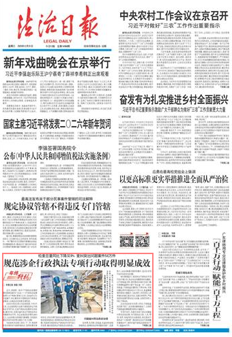 近日,我國第一部關(guān)于行政執(zhí)法監(jiān)督制度的國家層面專門立法——《行政執(zhí)法監(jiān)督條例》(以下簡稱《條例》)公布,自2026年2月1日起施行,標志著具有中國特色的行政執(zhí)法監(jiān)督進入全面法治化的新發(fā)展階段。