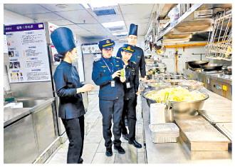 圖為近日,北京市朝陽區(qū)市場監(jiān)管局聯(lián)合相關(guān)部門在轄區(qū)商圈開展“綜合查一次”試點工作,為餐飲商戶提供集成化指導(dǎo)服務(wù)。 本報記者 徐偉倫 本報通訊員 岳典 攝