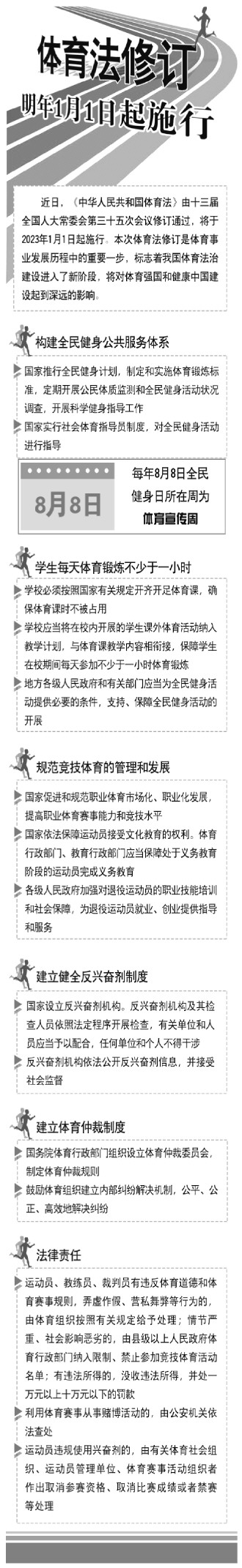 體育法修訂明年1月1日起施行