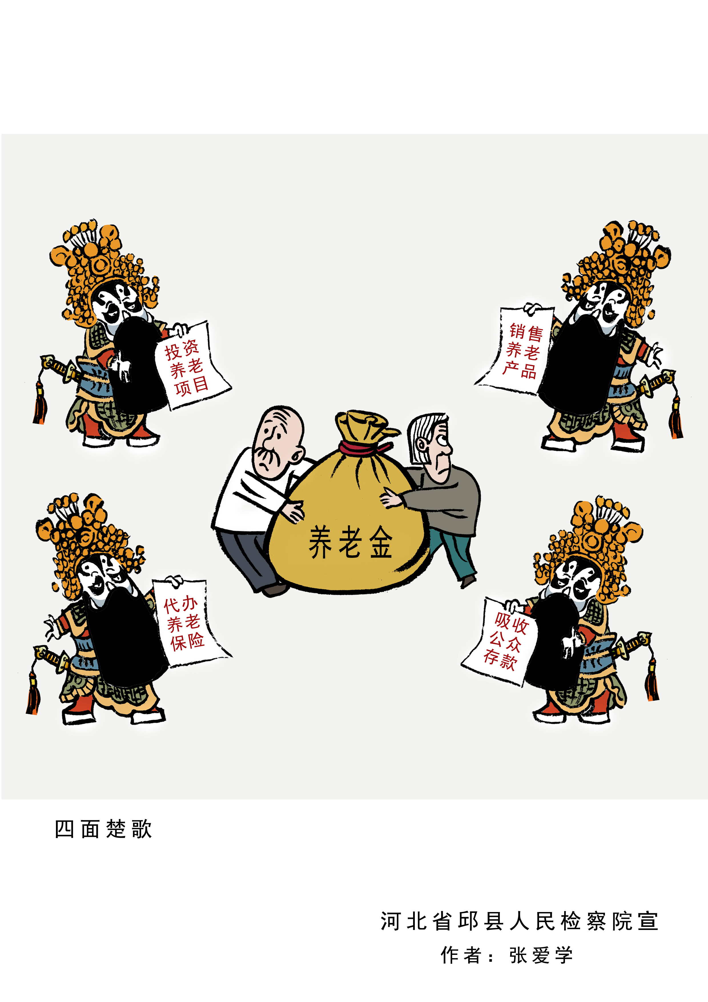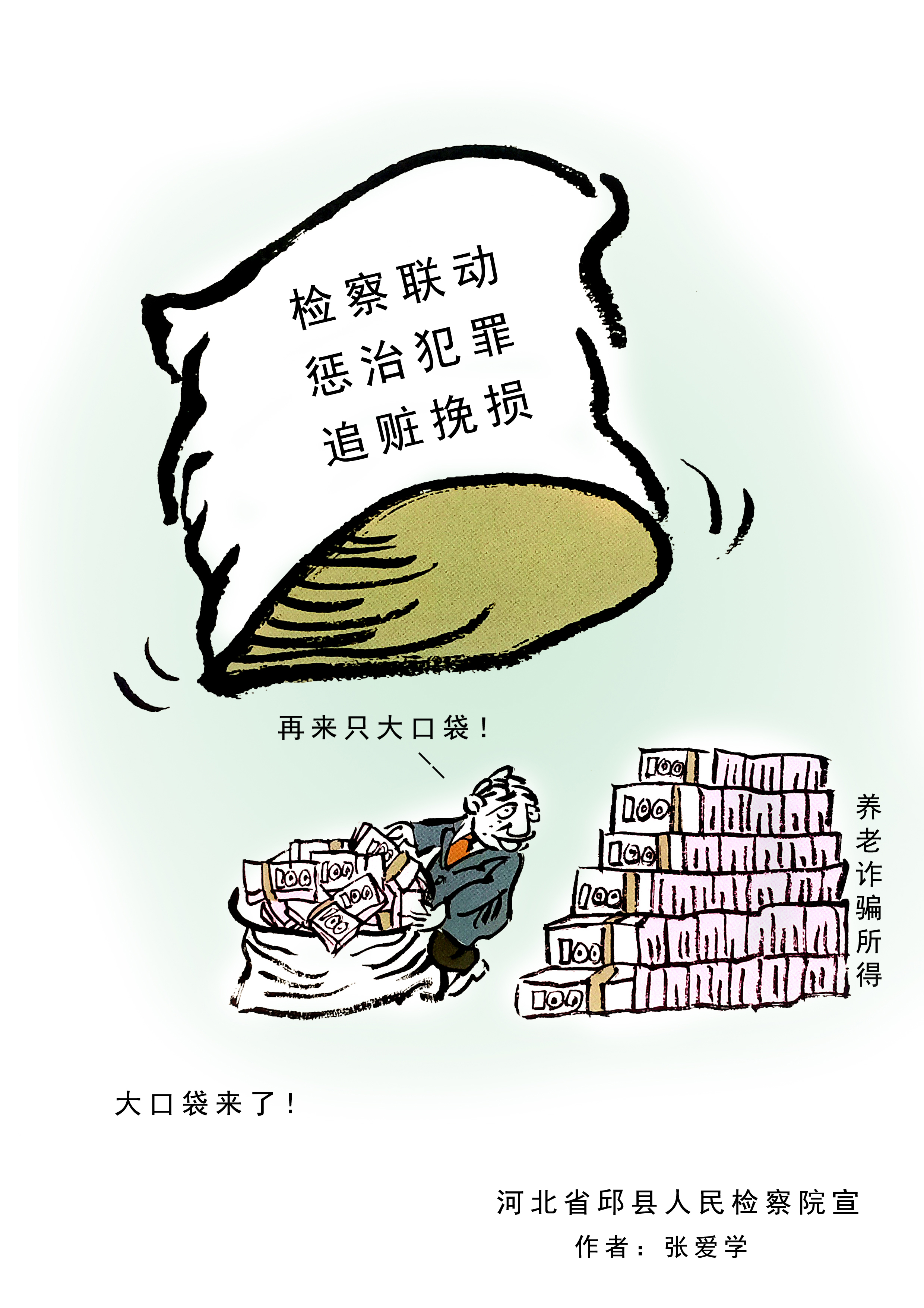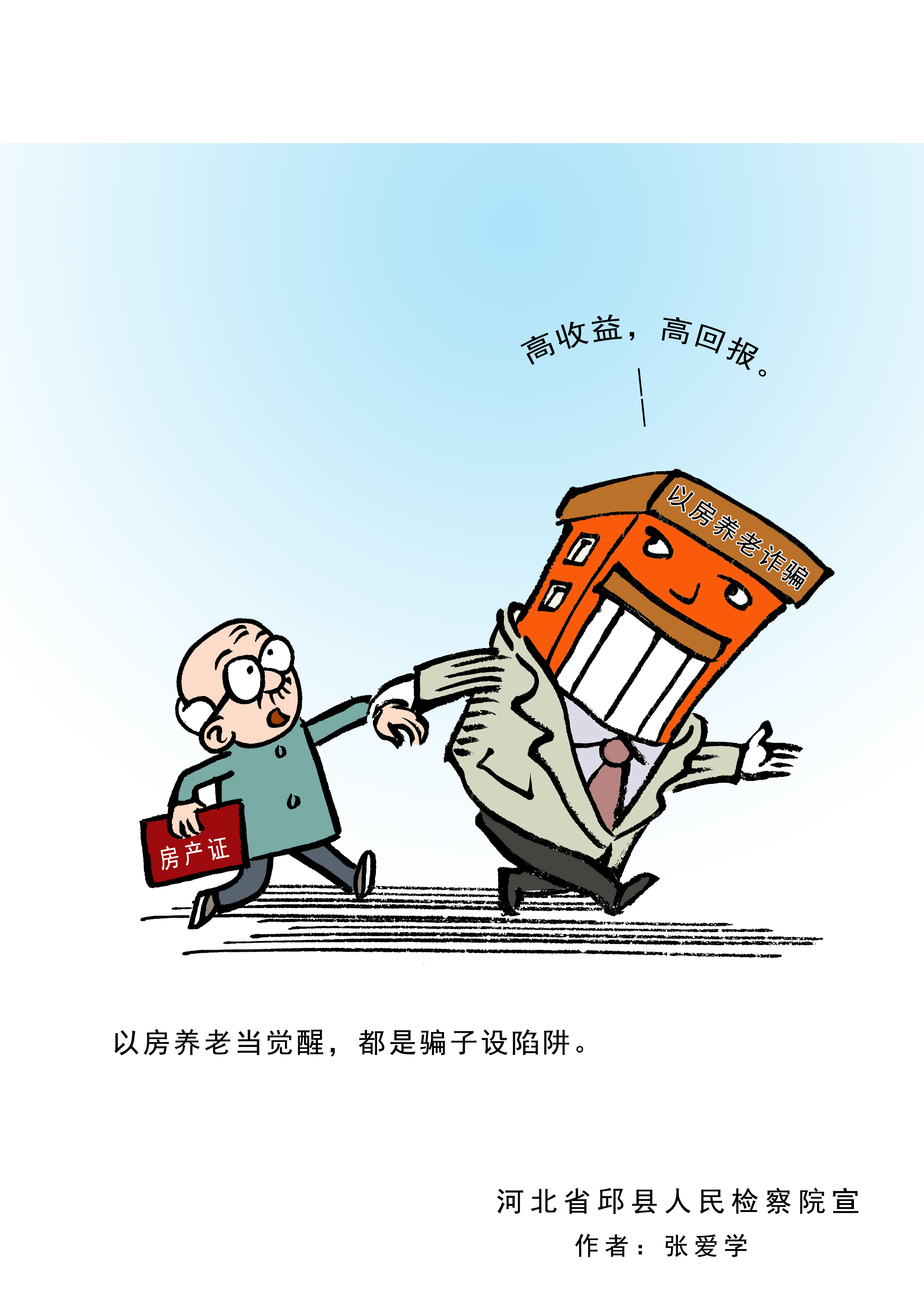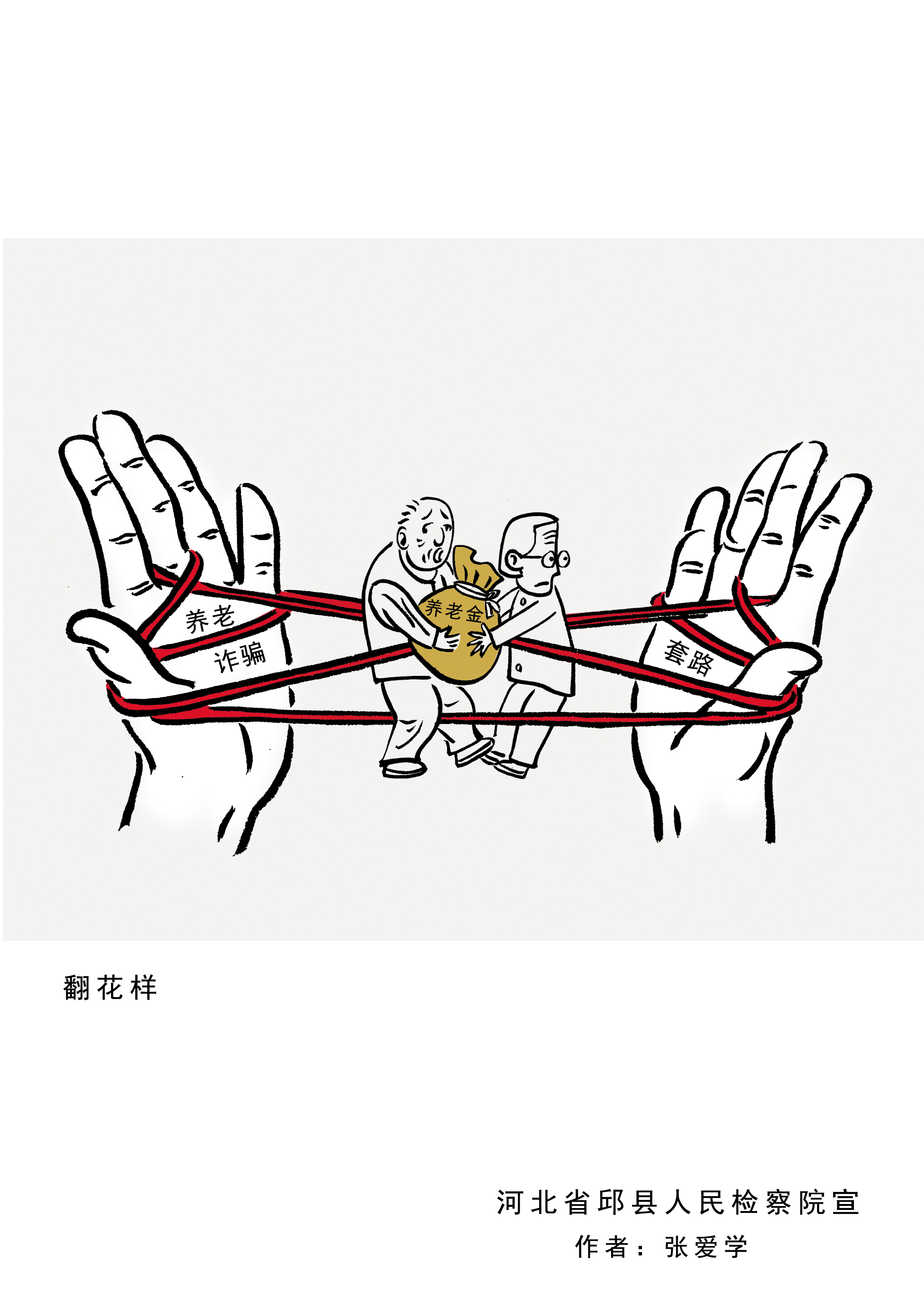 河北省邱縣檢察院借助“漫畫之鄉(xiāng)”優(yōu)勢,立足檢察職能,與當(dāng)?shù)芈嫾液献?,推出“檢言漫語”專門普法宣傳品牌,首批創(chuàng)作出涉養(yǎng)老詐騙系列漫畫。這些漫畫形象、生動、幽默,猶如一雙“慧眼”讓人過目不忘,幫助群眾輕松識別詐騙套路,以防上當(dāng)。