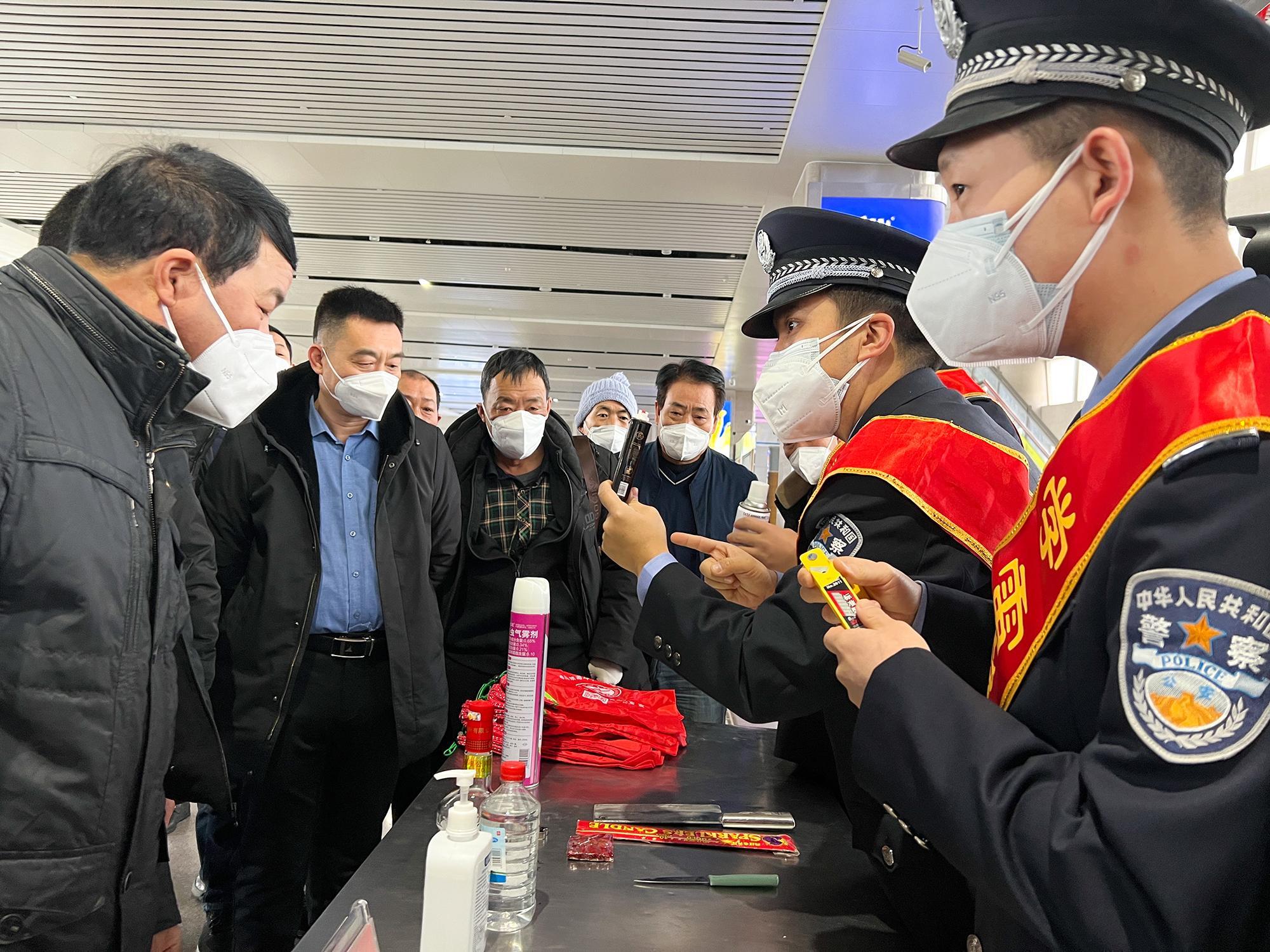 近日,烏魯木齊鐵路公安局奎屯公安處組織各站派出所開(kāi)展青年志愿者活動(dòng),民警深入候車廳、售票室、車廂內(nèi),通過(guò)發(fā)放宣傳資料、實(shí)物展示講解等方式,宣講鐵路安全知識(shí)、“防電詐”安全常識(shí)等,提升旅客群眾安全防范意識(shí),營(yíng)造安全、有序、溫馨的春運(yùn)乘車環(huán)境,展示良好鐵警形象。圖為克拉瑪依站派出所民警向候車旅客講解禁止攜帶的危險(xiǎn)物品種類。