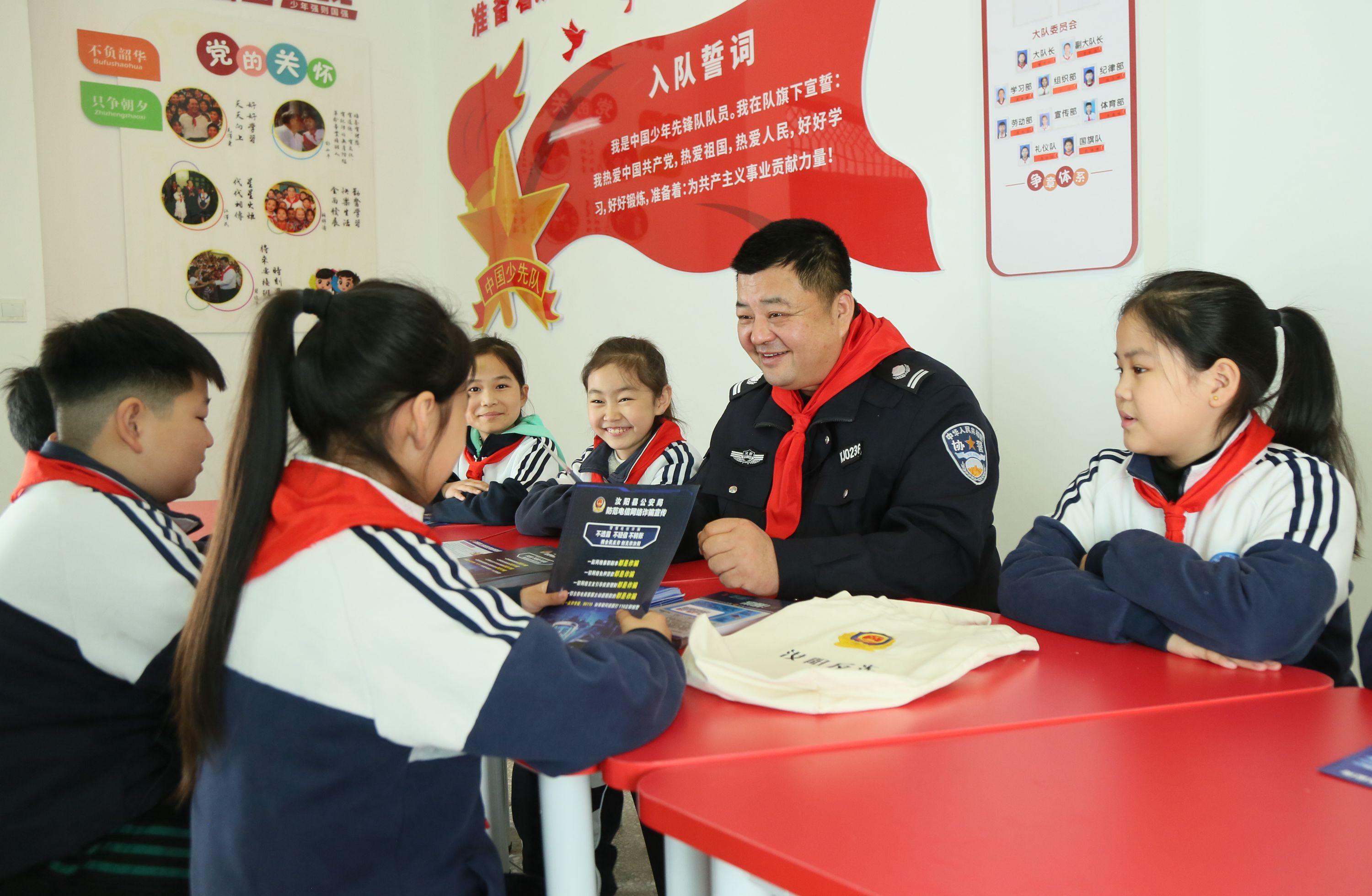 為有效遏制電信網(wǎng)絡(luò)詐騙案件發(fā)生,河南省洛陽市汝陽縣公安局組織法治副校長和少先隊校外輔導(dǎo)員,到中、小學(xué)校向?qū)W生們普及防詐騙知識。圖為4月4日,汝陽縣瑞云小學(xué)少先隊校外輔導(dǎo)員、縣公安局交警大隊協(xié)警張小鵬向同學(xué)們宣傳反詐知識。 本報通訊員 康紅軍 攝