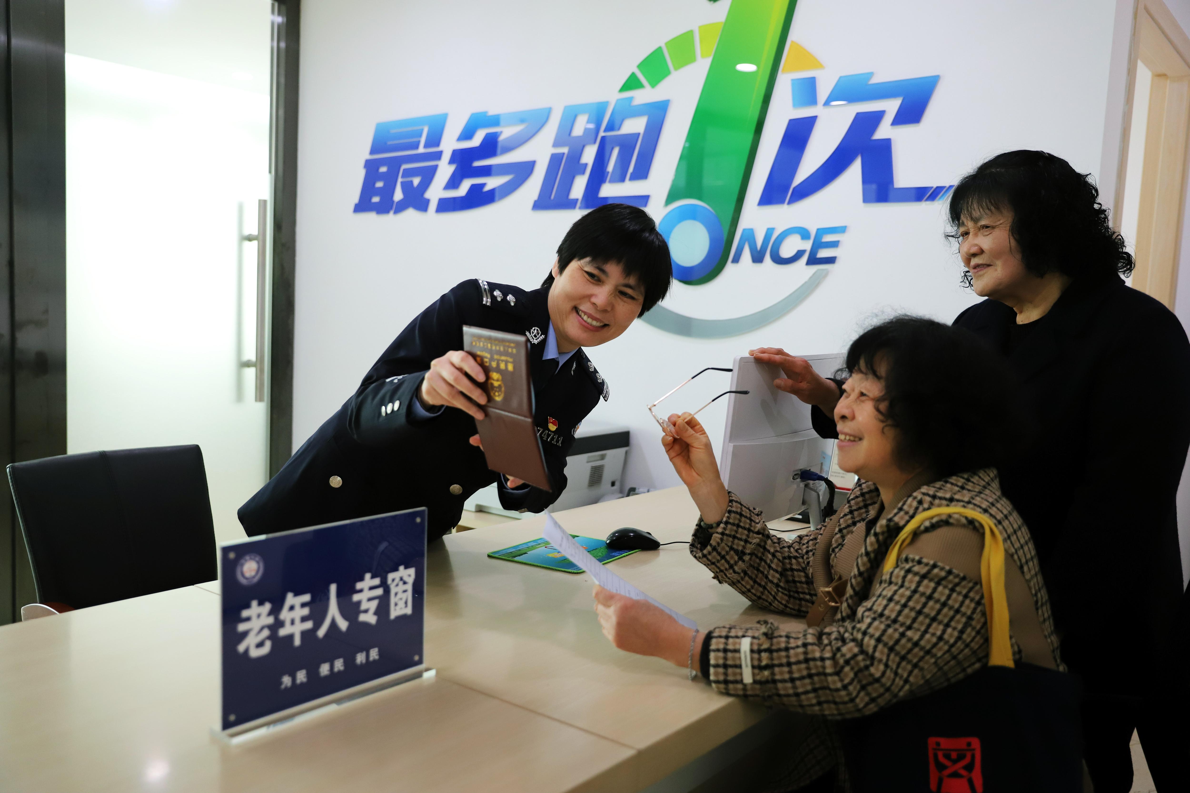 為方便老年人辦理業(yè)務(wù),今年以來(lái),浙江省臺(tái)州市公安局路橋分局各辦證窗口專門(mén)開(kāi)設(shè)老年人窗口,同時(shí)配備老花眼鏡等設(shè)施為老年人提供溫馨服務(wù)。圖為近日,路橋公安分局橫街派出所民警耐心為老年人辦理戶籍業(yè)務(wù)。本報(bào)通訊員 蔣友親 攝