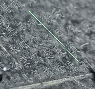 正在進(jìn)行數(shù)字化掃描的《龍門二十品》之一。??新華社記者 李嘉南攝