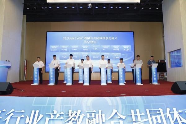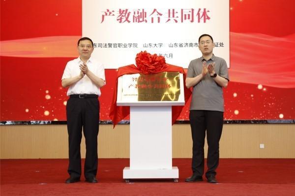 為深化產(chǎn)教融合,加強(qiáng)“政行企?!焙献?,推動公證事業(yè)高質(zhì)量發(fā)展,6月13日,由山東大學(xué)、山東司法警官職業(yè)學(xué)院、山東省濟(jì)南市齊魯公證處共同牽頭發(fā)起,全國50多家公證機(jī)構(gòu)、高校、企業(yè)、科研機(jī)構(gòu)及行業(yè)協(xié)會共同參與的智慧公證行業(yè)產(chǎn)教融合共同體成立大會在山東司法警官職業(yè)學(xué)院濟(jì)南校區(qū)舉行。山東省司法廳黨委委員、副廳長何旭與司法部法律職業(yè)資格管理局二級調(diào)研員、全國司法職業(yè)教育教學(xué)指導(dǎo)委員會秘書長呂偉耀為共同體揭牌。