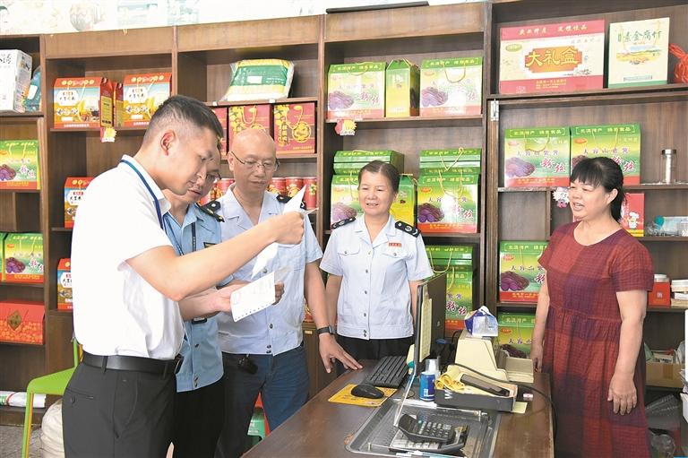 廣西壯族自治區(qū)北流市紀(jì)委監(jiān)委聚焦隱形變異“四風(fēng)”問(wèn)題,聯(lián)合稅務(wù)、市場(chǎng)監(jiān)督管理等部門(mén)組建監(jiān)督檢查組,深挖細(xì)查違規(guī)收送節(jié)禮等違反中央八項(xiàng)規(guī)定精神問(wèn)題。圖為近日,該市監(jiān)督檢查組到轄區(qū)內(nèi)的土特產(chǎn)店了解有關(guān)情況。李桂泉 攝