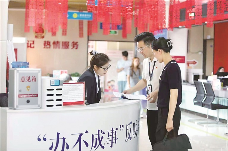 重慶市秀山土家族苗族自治縣紀(jì)委監(jiān)委將加強作風(fēng)建設(shè)作為提升群眾滿意度、優(yōu)化營商環(huán)境的重要抓手,緊盯不擔(dān)當(dāng)不作為、服務(wù)效率低下等問題,對窗口服務(wù)單位進行常態(tài)化監(jiān)督檢查,不斷推動作風(fēng)優(yōu)化。圖為該縣紀(jì)檢監(jiān)察干部在縣政務(wù)服務(wù)中心了解有關(guān)情況。胡程 攝