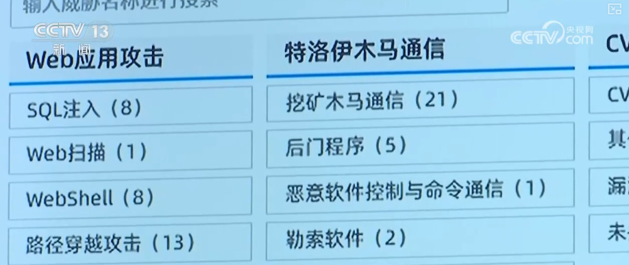 在網(wǎng)絡(luò)安全博覽會(huì)上,技術(shù)人員向記者介紹,對(duì)大型企業(yè)來(lái)說(shuō),需要面對(duì)的網(wǎng)絡(luò)攻擊類型很多。