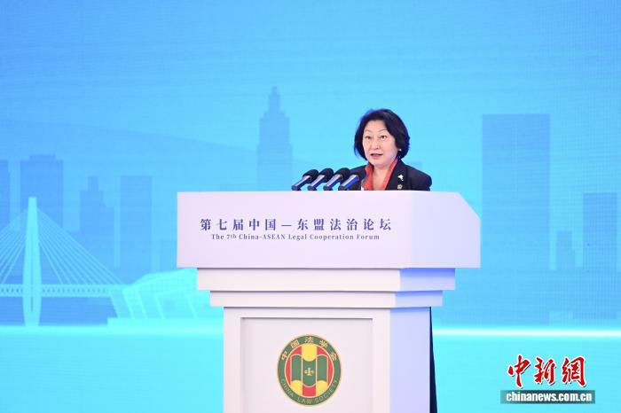 圖為國際調(diào)解院秘書長鄭若驊在第七屆中國—東盟法治論壇上發(fā)言。中新社記者 何蓬磊 攝