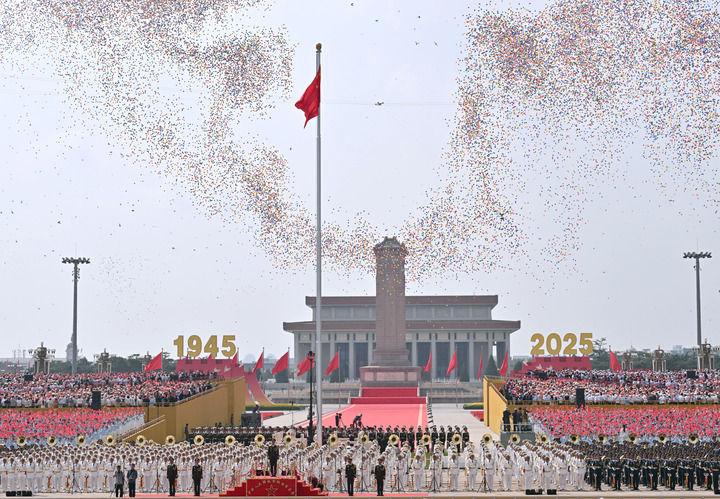 2025年9月3日,紀(jì)念中國(guó)人民抗日戰(zhàn)爭(zhēng)暨世界反法西斯戰(zhàn)爭(zhēng)勝利80周年大會(huì)在北京隆重舉行。這是紀(jì)念大會(huì)現(xiàn)場(chǎng)放飛氣球。新華社記者 李賀 攝