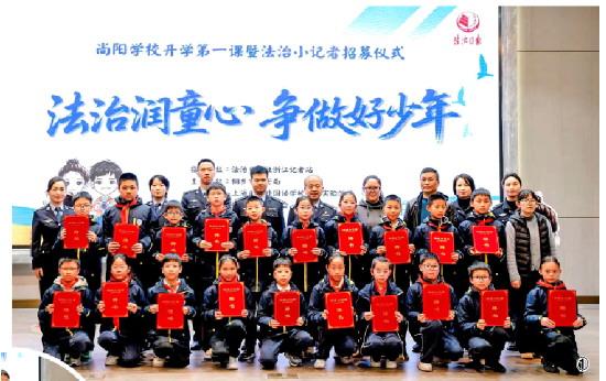 這是一堂特殊的“開學(xué)第一課”,也是浙江省桐鄉(xiāng)市公安局舉辦的“法治潤童心 爭做好少年”主題活動現(xiàn)場。當(dāng)天,尚陽學(xué)校首批20名法治小記者正式受聘上崗,佩戴專屬徽章,接過鮮紅的聘書,從此多了一重光榮的身份——法治精神的校園傳播者。