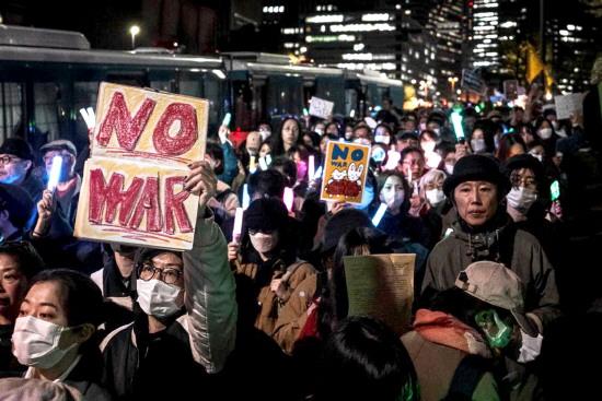 圖為4月8日晚,大批日本民眾在位于東京的國會議事堂前集會,抗議高市早苗政府部署遠程導彈、企圖解禁殺傷性武器出口等破壞和平憲法的動向。 新華社發(fā)