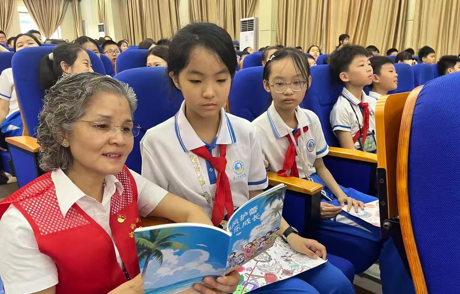 “媽媽訓教團”志愿者服務(wù)隊隊員謝盛東、李春燕、鄭愛琳、路婭莉、陳愛珍、彭紅威、楊桂云、符文寶、謝振榮、晏桂芬,??谑泄簿置捞m分局紅島海岸派出所民警,以及學校400名師生共同參與活動。