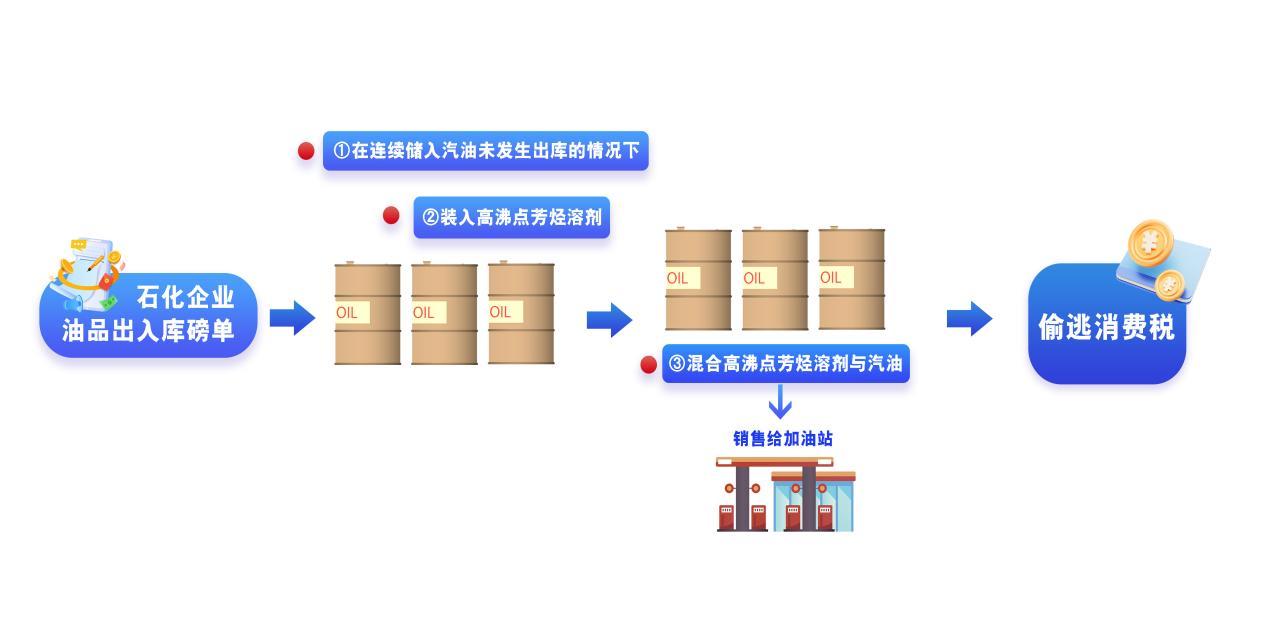 至此,宏堅(jiān)石化的逃稅手法“一覽無余”:該企業(yè)作為經(jīng)銷企業(yè),從上游采購(gòu)敏感化工品,在無生產(chǎn)資質(zhì)的情況下,直接將這些原料注入儲(chǔ)罐進(jìn)行物理混合,產(chǎn)出所謂的“汽油”進(jìn)行銷售,規(guī)避其作為油品調(diào)和者應(yīng)承擔(dān)的消費(fèi)稅納稅義務(wù),達(dá)到偷逃稅款的目的。