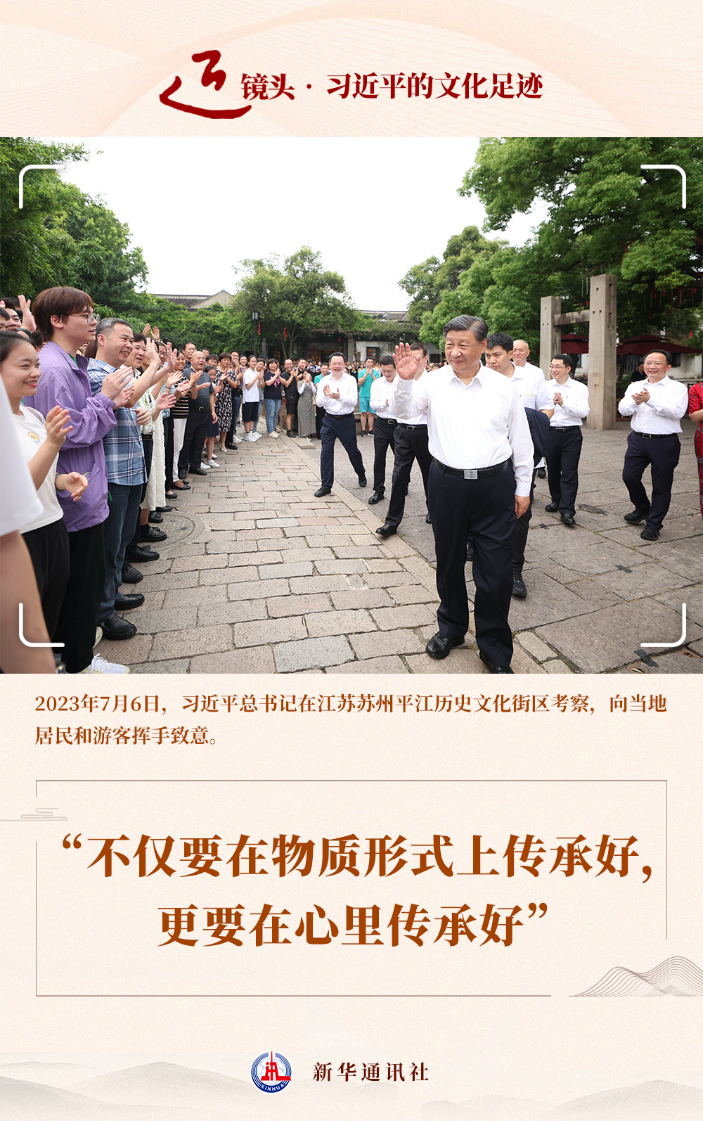 這次考察中,總書記深情囑托:“平江歷史文化街區(qū)是傳承弘揚(yáng)中華優(yōu)秀傳統(tǒng)文化、加強(qiáng)社會(huì)主義精神文明建設(shè)的寶貴財(cái)富,要保護(hù)好、挖掘好、運(yùn)用好,不僅要在物質(zhì)形式上傳承好,更要在心里傳承好?!?/p>