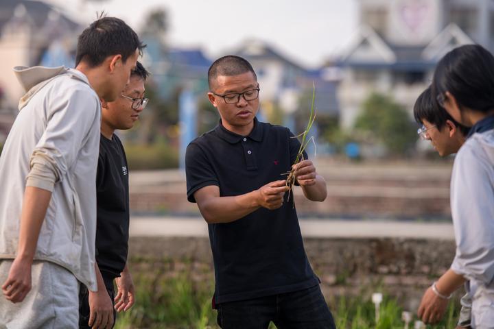 今年37歲的黃光福是云南大學(xué)農(nóng)學(xué)院的一名青年教師,同時也是云南大學(xué)在云南省勐??h勐遮鎮(zhèn)曼恩村成立的多年生稻科技小院的負(fù)責(zé)人。多年來,他帶領(lǐng)學(xué)生扎根田間,進(jìn)行技術(shù)攻關(guān)。團(tuán)隊(duì)利用長雄野生稻特有的地下莖無性繁殖能力,成功培育出“云大25”“云大107”等新品種,突破性地實(shí)現(xiàn)水稻“一次栽種、連續(xù)收割”,讓“割韭菜般收稻子”的農(nóng)業(yè)成果從實(shí)驗(yàn)室走向田間地頭。這是2025年2月27日,青年教師黃光福(中)在試驗(yàn)田間給學(xué)生授課。