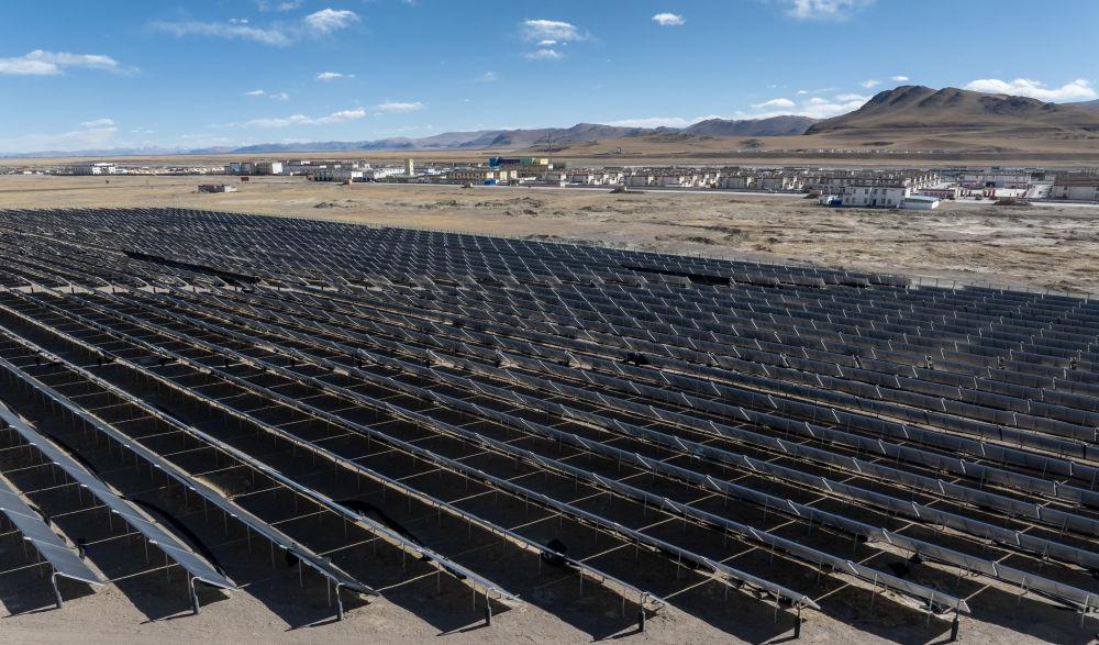 2024年11月20日在阿里地區(qū)措勤縣拍攝的光伏陣列。西藏擁有豐富的清潔能源資源,水力資源可開發(fā)量1.8億千瓦,光伏資源可開發(fā)量98億千瓦。長期以來,西藏挖掘清潔能源潛能,持續(xù)推進清潔能源項目建設(shè)。從極度缺電到加快建設(shè)國家清潔能源基地,從產(chǎn)能方式單一到水能、風能、太陽能、地熱能發(fā)電齊上陣,西藏清潔能源電力裝機占比達到96%,比重全國第一;清潔能源發(fā)電量占比超99%,基本實現(xiàn)全清潔電力供應(yīng),成為全國清潔能源發(fā)電量占比最高的省級電網(wǎng)。