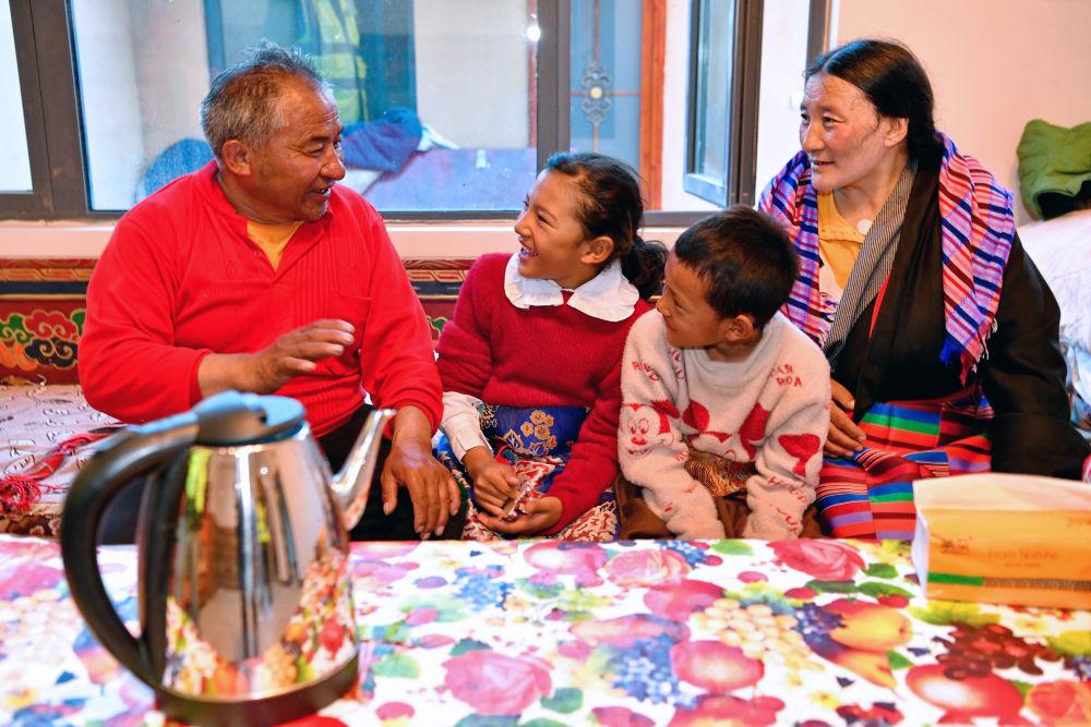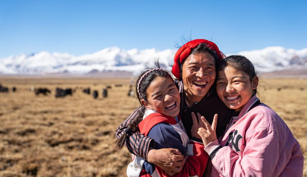 2023年11月15日,拉薩市當雄縣中學生斯曲卓瑪(右)和爸爸、妹妹在一起。斯曲卓瑪和班里其他51名同學均來自草原,目前在學校接受現(xiàn)代化的雙語教育。在國家支持和組團式教育援藏幫助下,西藏逐步建立起涵蓋學前教育、基礎(chǔ)教育、職業(yè)教育、高等教育、繼續(xù)教育、特殊教育的現(xiàn)代教育體系,落實農(nóng)牧民子女“上學無負擔”措施,教育質(zhì)量穩(wěn)步提高。