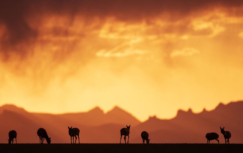 2024年6月16日,在羌塘國家級自然保護區(qū)境內(nèi)的那曲市申扎縣買巴鄉(xiāng)魯確塘草原上,待產(chǎn)的藏羚羊沐浴在晚霞中。藏羚羊是國家一級保護動物,經(jīng)過多年有效保護,種群數(shù)量明顯增長,保護等級從過去的“瀕危物種”降為“近危物種”?!?023西藏自治區(qū)生態(tài)環(huán)境狀況公報》顯示,西藏境內(nèi)藏羚羊種群已增長至30多萬只。
