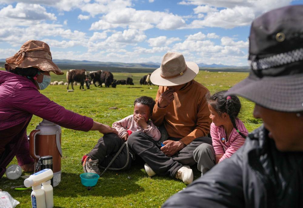 2022年7月19日,從那曲市雙湖縣多瑪鄉(xiāng)搬遷到森布日安置點新居的牧民在新家里聊天。為破解人與自然和諧共生難題,筑牢國家生態(tài)安全屏障,西藏自治區(qū)于2019年開始開展全國海拔最高縣西藏雙湖縣高海拔生態(tài)搬遷。2022年7月,西藏實施雙湖縣第二批高海拔牧民生態(tài)搬遷,南部4個鄉(xiāng)鎮(zhèn)牧民告別苦寒高遠的藏北,遷往雅魯藏布江畔的森布日安置點,在新家園開啟新生活。