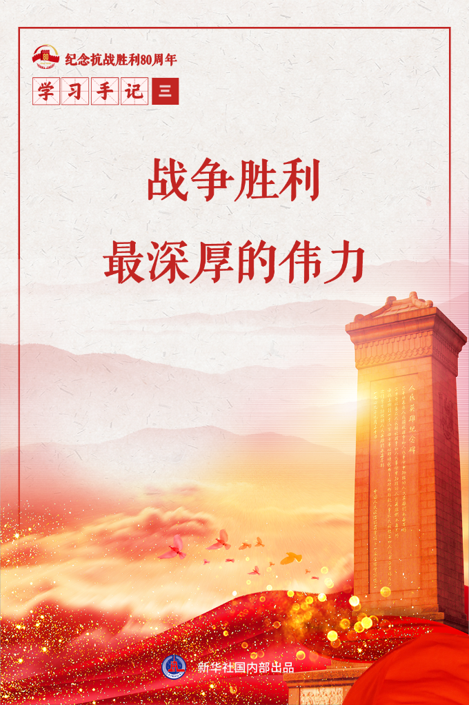 民族危亡之際,中國人民迸發(fā)出勢不可擋的力量。中國人民抗日戰(zhàn)爭勝利是全體中華兒女勠力同心、以弱勝強(qiáng)的雄渾史詩,顯示了中國人民和中華兒女堅不可摧的磅礴力量。