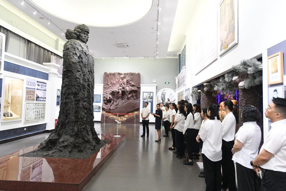 2025年7月7日,參觀者在哈爾濱市東北烈士紀(jì)念館參觀展現(xiàn)楊靖宇形象的雕塑作品《脊梁》。