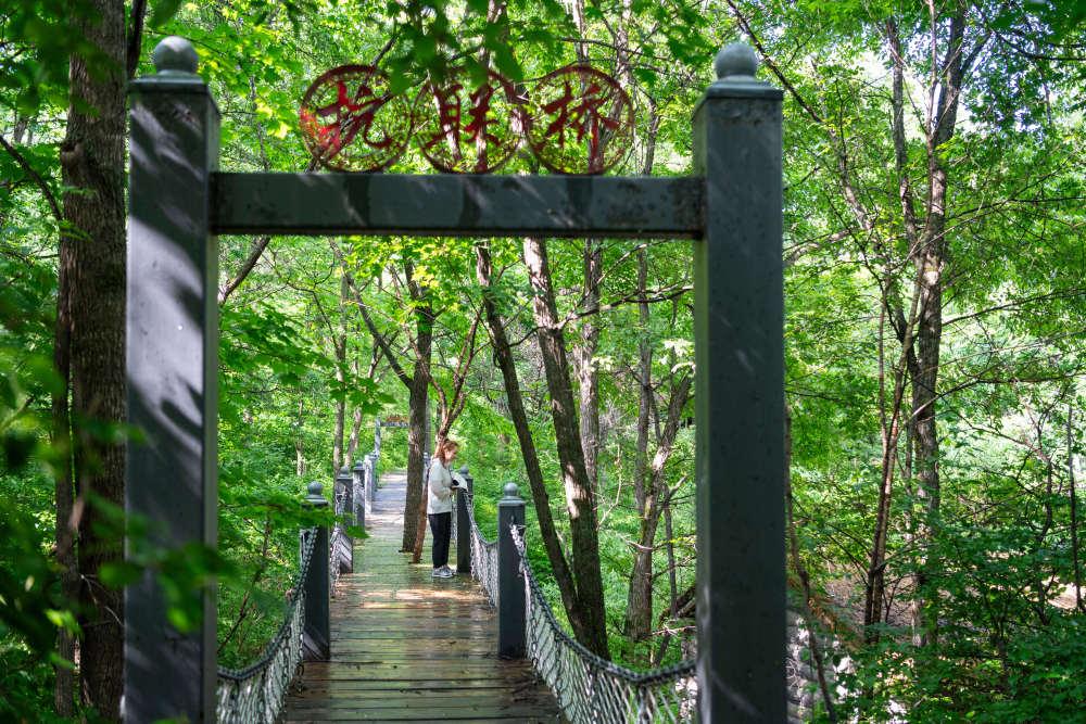 在黑龍江集賢縣、樺南縣、雙鴨山市嶺東區(qū)交界處的七星山間,分布著一系列東北抗聯(lián)密營(yíng)遺址。抗戰(zhàn)時(shí)期,東北抗聯(lián)在此建立起兵工廠、被服廠、軍政干校、后方醫(yī)院、秘密營(yíng)地、修械所等抗日基地,為抗日斗爭(zhēng)提供保障。近年來(lái),當(dāng)?shù)丶哟髮?duì)七星山國(guó)家森林公園的建設(shè)投入,發(fā)揮其紅色教育、科普研學(xué)的愛國(guó)主義教育功能。這是2025年6月17日,游客在七星山國(guó)家森林公園參觀。