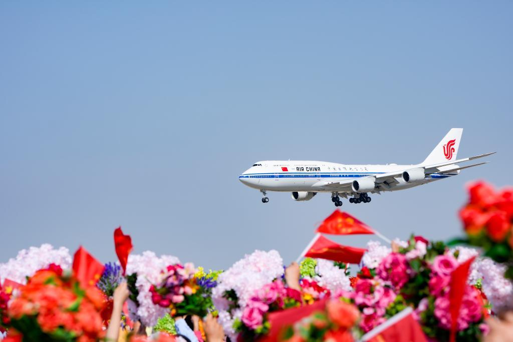 機(jī)場(chǎng)到住地沿途,花團(tuán)錦簇、彩旗飄揚(yáng)。人群如潮水涌到道路兩旁,揮動(dòng)的手臂與旗幟匯成海洋,一顆顆心激動(dòng)澎湃。習(xí)近平總書記向沿途群眾頻頻揮手、親切致意。