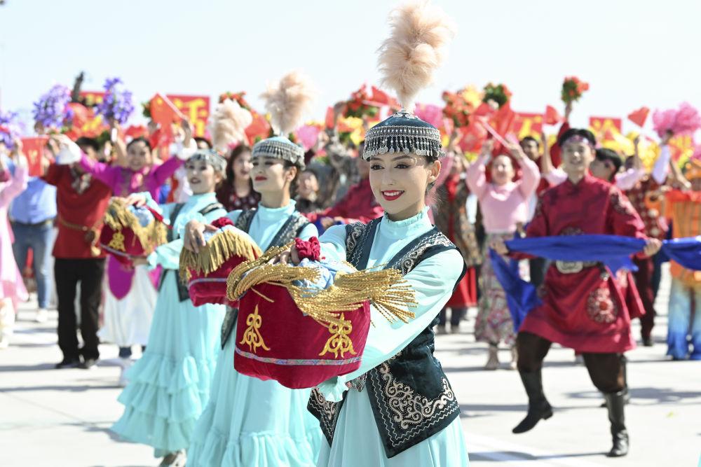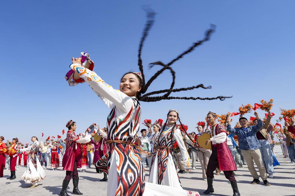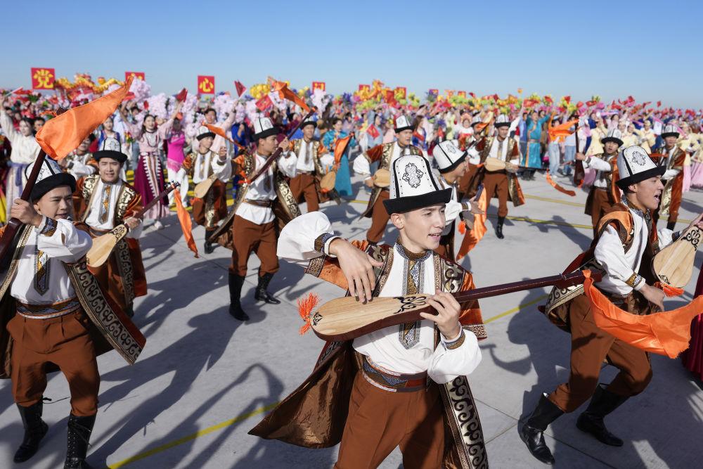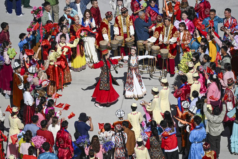 新華社記者的鏡頭里,各族兒女簇?fù)碓谝黄?,歡笑在一起;明艷的服飾、熱烈的歌舞,無不展現(xiàn)出團結(jié)與奮進的力量。