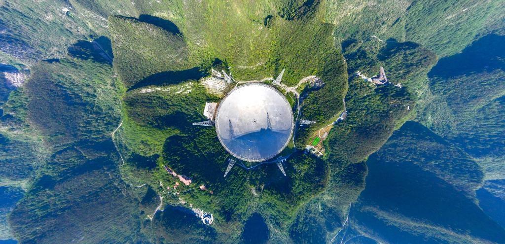 這是2024年9月25日拍攝的“中國天眼”全景(無人機(jī)照片,維護(hù)保養(yǎng)期間拍攝)。 新華社記者 歐東衢 攝