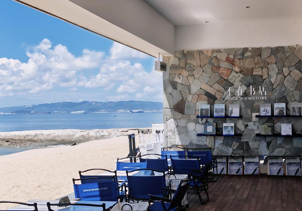 暮色四合時,位于廈門環(huán)島路黃厝沙灘的“不在書店”,迎來一天中人氣最旺的時段。